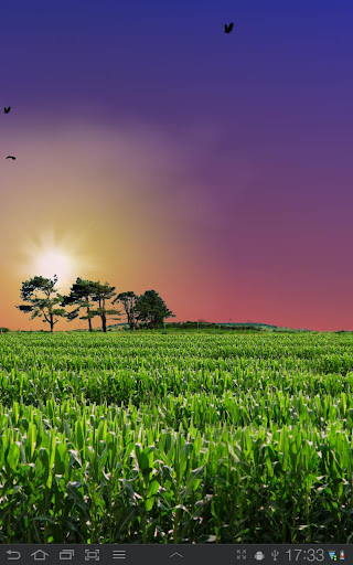 Overview: A live wallpaper request from a customer: a green cornfield swaying in the wind under a live sky with sun, moon and rushing clouds.