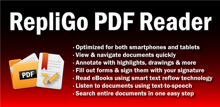 RepliGo Reader is the first Android application to enable both viewing and annotating of PDF files. Review documents on the go by adding highlights, cross outs, underlines, sticky notes, arrows, lines, ovals, rectangles and freehand drawings. Comments are stored as standard annotations in the original PDF file, just like Adobe® Acrobat®.